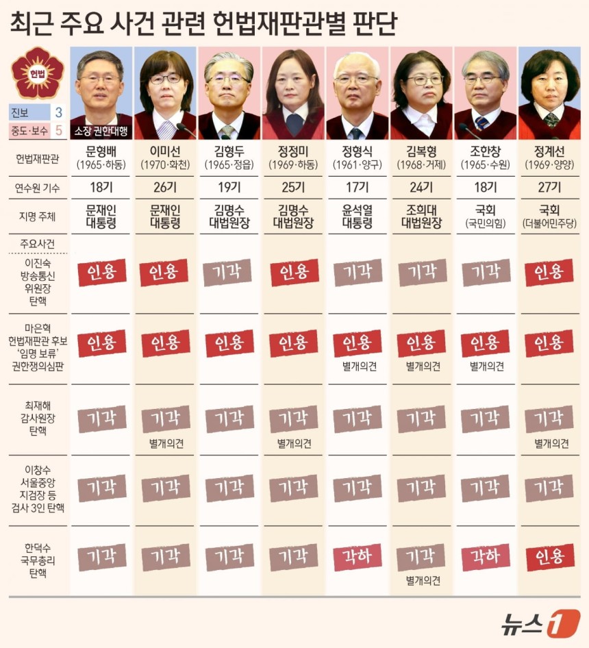 한덕수 탄핵소추, 기각 5인·인용 1인·각하 2인 의견 갈렸다